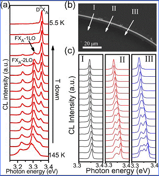 图6. 液氦温度下弯曲ZnO微米线中的精细CL光谱结构(廖志敏、付强 等,Scientific Reports 2,pp452,2012, Nature Publishing Group)。