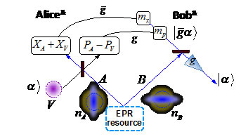 图 1.优化实验参数g,实现方向性A—>B或B—>A的量子纠缠、量子引导关联,以及量子失协,进而实现从Alice到Bob或者从Bob到Alice的量子隐形传态或者其他量子通讯任务。