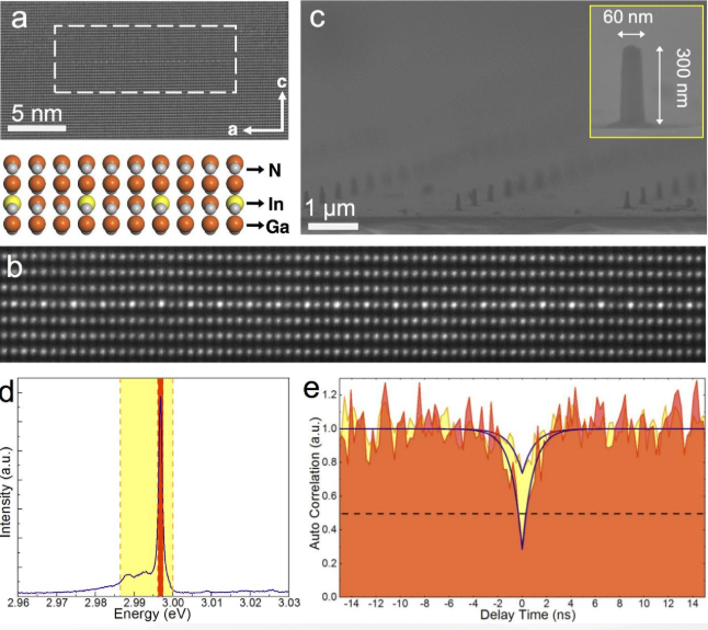 图1. 可控可调节的InGaN单层嵌入GaN薄膜中形成的新型量子发射器