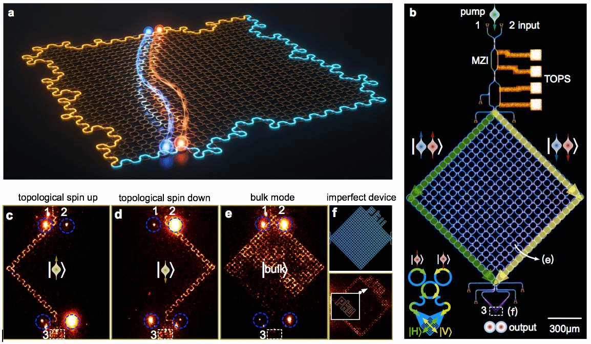 量子信息与拓扑物理是量子力学衍生出来的两个重要学科分支,其中量子纠缠态与拓扑相既是基础物理研究的核心内容,也是前沿技术发展的关键物理资源。量子纠缠是量子计算、量子模拟和量子通信等应用的关键资源,约20量子比特的量子纠缠态均已在光子、超导、离子和原子等体系中实现;然而,量子纠缠对量子器件加工、量子器件调控等过程中存在的完美性,提出了苛刻的实验要求,使得量子技术在走向实际应用的过程中面临着诸多挑战。另外,拓扑相的物理概念,源自强磁场下二维电子系统观察到的整数量子霍尔效应,近年来拓展到了光学、声学和冷原子等体系,并且大放异彩;拓扑相所具有的鲁棒性给予了拓扑边界态在对称性保护下的抗缺陷和抗不完美的能力。因此,制备出具有拓扑保护的量子纠缠态,对研制大规模集成的量子器件和大尺度量子计算机,以及研究量子体系的新拓扑物理和现象等,均具有重要的现实意义。