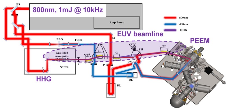 图1:基于气体高次谐波产生(HHG)的极紫外(EUV)光电子显微镜(PEEM)光路图。
