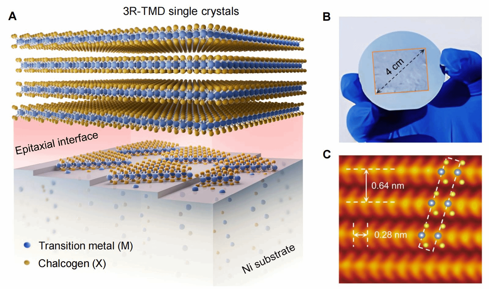 图1.发展“晶格传质-界面外延”生长新范式,制备晶圆级3R-TMDs单晶