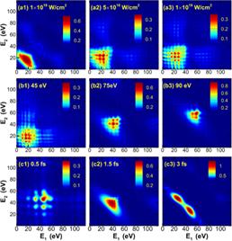 当前,多个实验室和重大科学设施致力于产生各种新型光源,包括自由电子激光和台式超短强激光脉冲,利用这些光源与物质的相互作用,很多崭新的物理机制不断被人们发现和认识。随着光源和探测技术的发展,大光子能量下的光电离过程成为新的研究对象,当光子波长和电子运动尺度可比拟时,非偶极效应将不可忽略,为理论计算和实验测量带来了新的挑战。另外,在强XUV脉冲作用下的理论计算在稳定性和复杂度方面也提出了更苛刻的要求。 彭良友教授和龚旗煌院士等长期致力发展系列数值方法精确求解少电子原子分子体系的含时薛定谔方程,开发了数套大规模并行计算程序,部分程序的运行效率和计算精度达到了业界领先水平。在原有工作的基础上,此次他们将氦原子双电离的程序分别拓展到能精确处理任意偏振光下电离时的非偶极效应以及高强度XUV脉冲下的双电离过程。