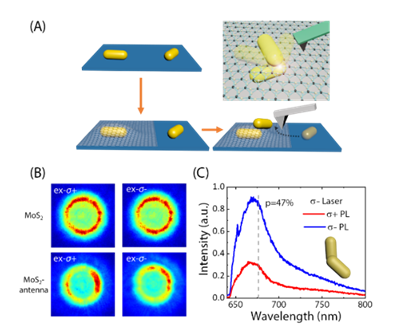 人工微结构和介观物理国家重点实验室“极端光学创新研究团队”吕国伟研究员和龚旗煌院士等在二维材料谷极化发光研究中取得重要进展:利用扫描探针操控纳米颗粒组装成超小型手性光学天线,实现在常温下对单层二硫化钼谷极化发光偏振度与辐射方向的高效调制。相关研究成果在线发表于《科学·发展》上【Steering valley-polarized emission of monolayer MoS2 sandwiched in plasmonic antennas,https://advances.sciencemag.org/content/6/21/eaao0019;DOI: 10.1126/sciadv.aao0019】。