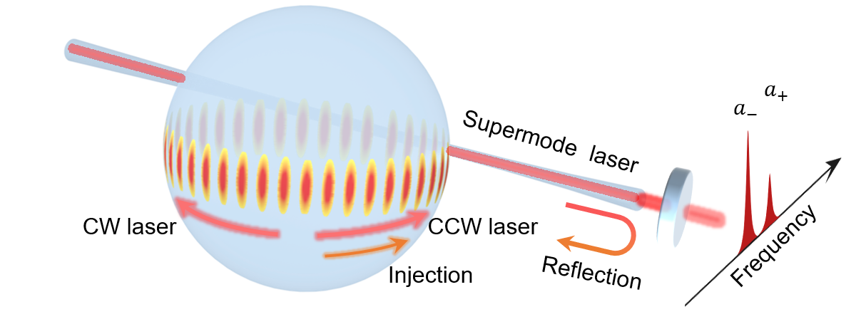 近简并光学超模产生的微腔激光在非厄米物理学、片上相干光源和高灵敏传感等光子学基础理论及应用领域潜力巨大,因此长期以来都是研究热点。其中,以拉曼激光为代表的受激散射激光因具有超窄的线宽、灵活的工作波长和增益材料等优势而备受关注。然而,尽管微腔超模受激散射激光已在纳米颗粒检测和超灵敏光学陀螺仪等研究中取得重要进展,但其激光模式的光谱特性一直存在较大争议:一方面,模式竞争理论指出,受激散射激光的增益钳制效应会导致单模激射;另一方面,人们在微腔超模拉曼激光中广泛观察到的拍频现象则被认为是双模激射的标志。这一争议的悬而未决阻碍了超模激光的进一步研究和应用。