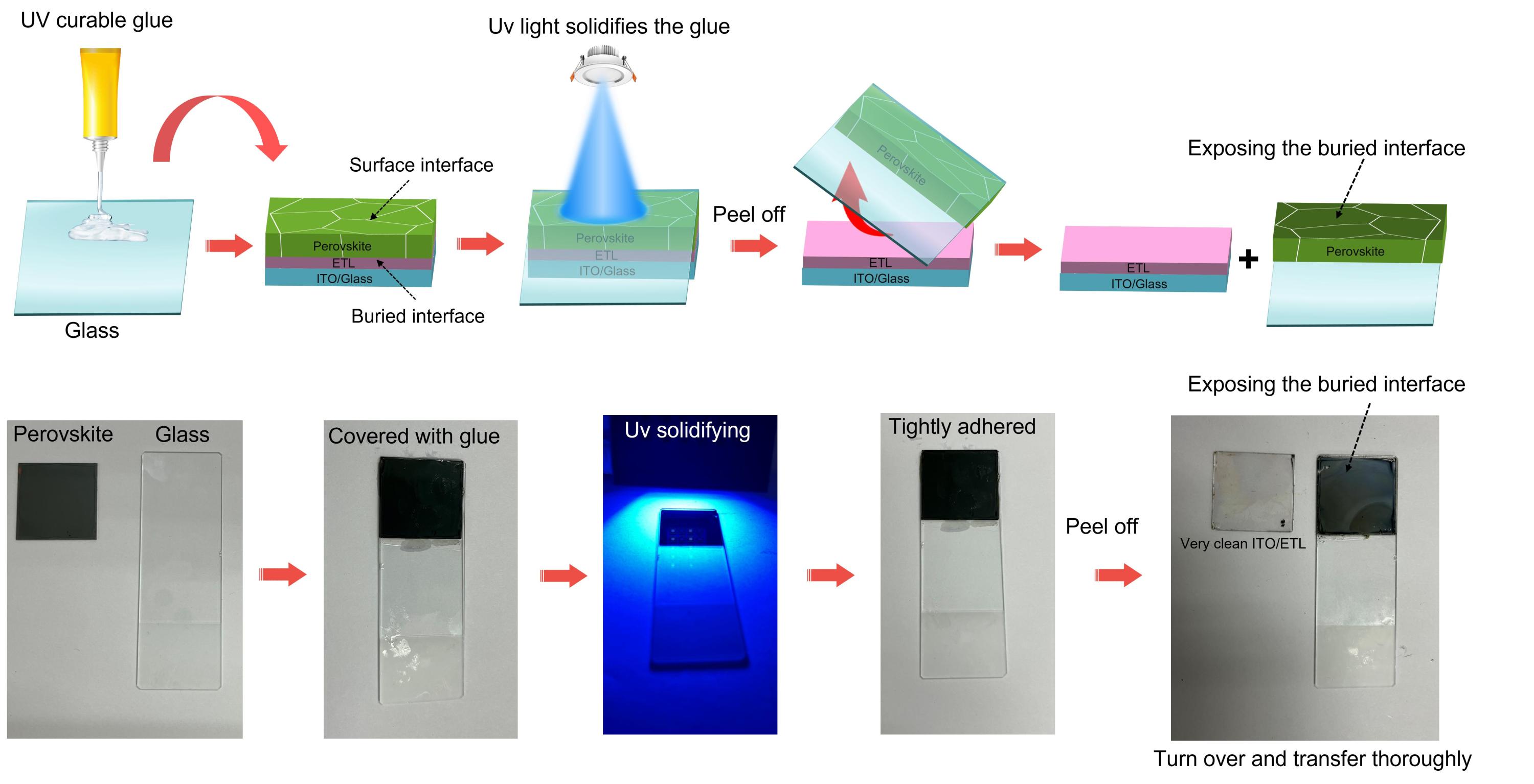 图1.无损大面积揭开埋底界面的示意图及相应的实验照片。