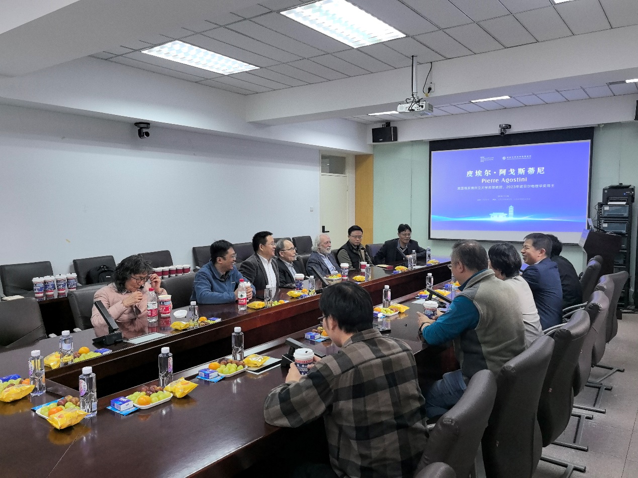报告会后,阿戈斯蒂尼参观了物理学院现代光学研究所实验室,并与青年教师亲切座谈。刘运全介绍了现代光学研究所在超快科学、量子光学、微纳光子学等前沿领域的布局及近年取得的重要进展,阿戈斯蒂尼和陈瑞良结合自己多年体会与青年教师畅谈在科研工作中如何不断寻找创新方向,突破自我,探索人类认知极限。