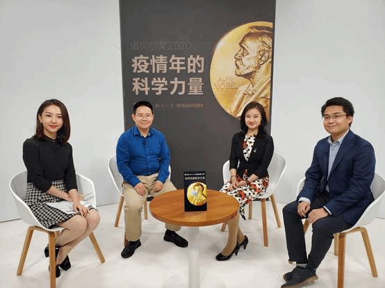 2020年10月6日,本年度诺贝尔物理学奖揭晓。北京大学人工微结构和介观物理国家重点实验室彭良友教授(下图左二)应邀做客“疫情年的科学力量”诺贝尔奖特别报道直播节目。该科普活动由微信公众号“知识分子” 与腾讯新闻发起,联合看看新闻、墨子沙龙出品。北京时间17:00起,彭良友与主持人张天娇、北京大学物理学院校友中国工程物理研究院储祥蔷研究员、中国科学技术大学徐飞虎教授一道,就诺奖的120年历史、提名和评选过程,近年来令人关注和获奖的研究领域,诺奖及当代社会和人类生命健康等相关话题,与网友展开近90分钟的热烈互动。据悉,当晚直播吸引了21.8万人次在线观看,回放功能将有助于此项科普服务的延续。
