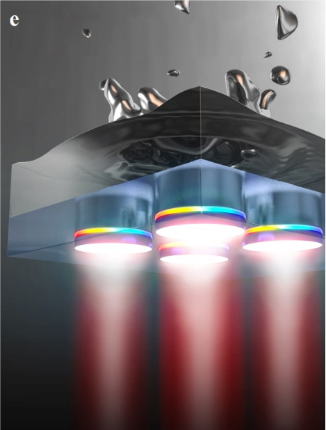 马仁敏研究员课题组与南京大学等单位合作,利用液态金属可控冷却旋涂技术,结合金属-绝缘体-半导体间隙等离激元优化设计,首次制备高品质因子金属钠-InGaAsP量子阱复合微结构,实现了通讯波段纳米激光的室温激射,其激射阈值(140 KW/cm2)创同类激光器新低。该成果以“稳定高性能钠基近红外等离激元器件”(Stable, high-performance sodium-based plasmonic devices in the near infrared)为题,发表于《自然》(Nature, 2020, 581: 401—405);北京大学毛逸飞为共同第一作者,马仁敏为共同通讯作者。