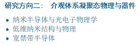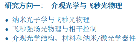 实验室努力建设有明显介观物理研究特色、光学与凝聚态紧密结合的研究基地,深入开展介观物理中的重大基础科学问题、应用前沿问题的研究;同时加强与交叉学科的联系,使人工微结构和介观物理的研究手段和观念在能源、生命科学等领域得到开拓发展和应用延伸。实验室研究以介观尺度下凝聚态物理和光学为主要研究内容,并开展与能源、材料、生命科学和化学等多学科的融合和交叉研究。围绕介观光学与飞秒光物理、介观体系凝聚态物理与器件、介观物理交叉与重大应用三个重要研究方向做出原创性成果。建设一个基础研究与应用研究相结合的一个既有利于学科发展、又便于为人才培养服务的综合研究基地。